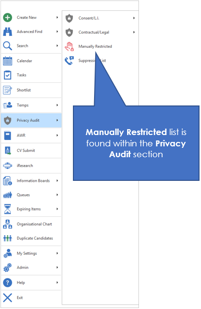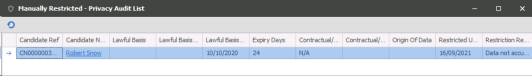 A Candidate may wish to be manually restricted if their data is not accurate or they are contesting Legitimate Interest. They will be Restricted for a set period of time. (Up to 2 years)