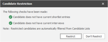 Users with the ‘MaintainRestrictedCandidates’ permission can manually restrict candidates