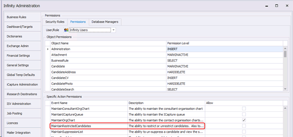 Users CAN post from iCapture to update a Restricted Infinity Candidate