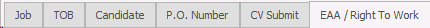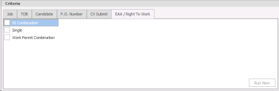 The EAA / Right to Work tab contains Employment Agency Act / Right to Work related criteria to enable you to build the Business Rule using 3 options: