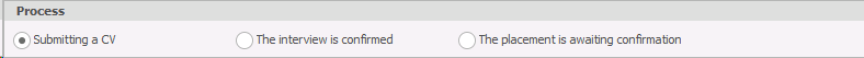 Next select the Process Type; your Business Rule will be based on one of the three processes, submitting a CV, the interview is confirmed, and the placement is awaiting confirmation.
