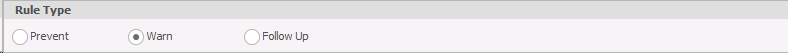 - Select one of the three Rule Types; Prevent, Warn, Follow Up