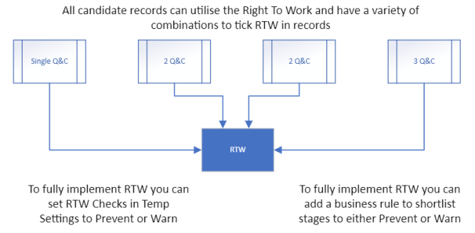 - Right To Work / EAA - this can be setup within the General Settings area and enable you to setup either single Q&C or combinations of Q&C's (mixture of 2 or 3 Q&C's)