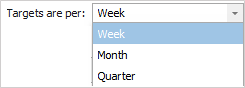 Each Target Setting is based on either per Quarter, Month or per Week. The option can be changed using the “Targets are per” drop down option. It is important that once you start setting targets that you leave this interval setting the same for all targets.