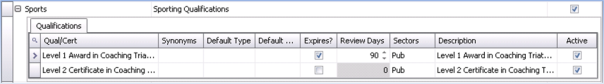 - If you make the Quals & Cert Category or Qualification inactive it will still remain in any Quals & Certs grids if it was previously assigned to any records.