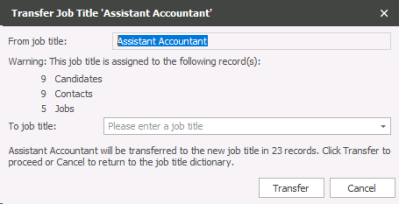 Maintaining the Dictionary may involve transferring Job Titles to other Job Titles.