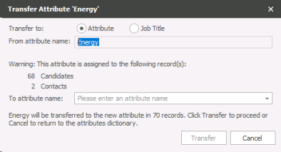 - Begin by selecting the Attribute you wish to transfer, then click the Transfer icon