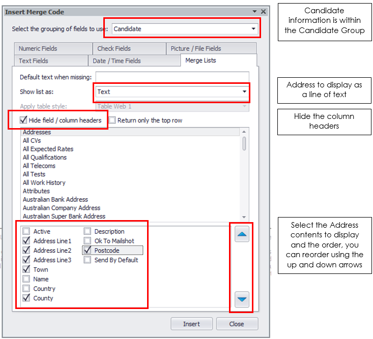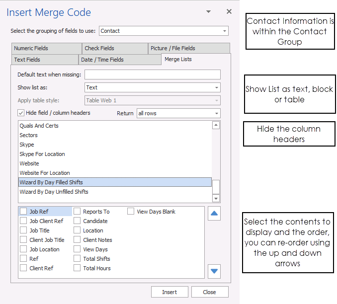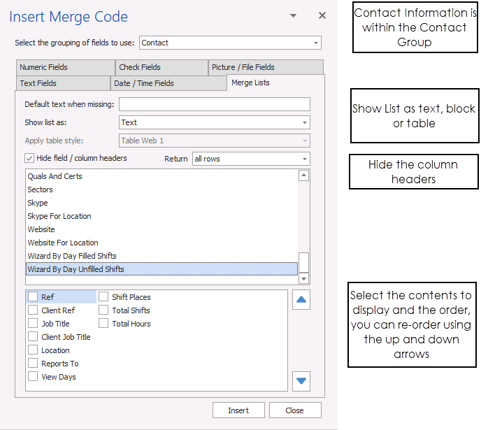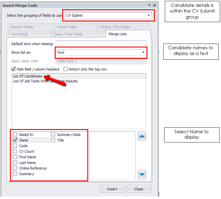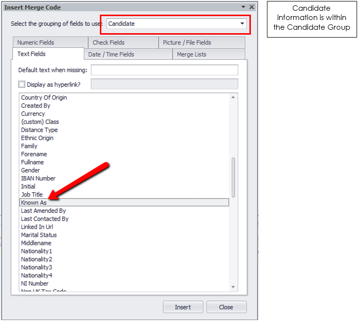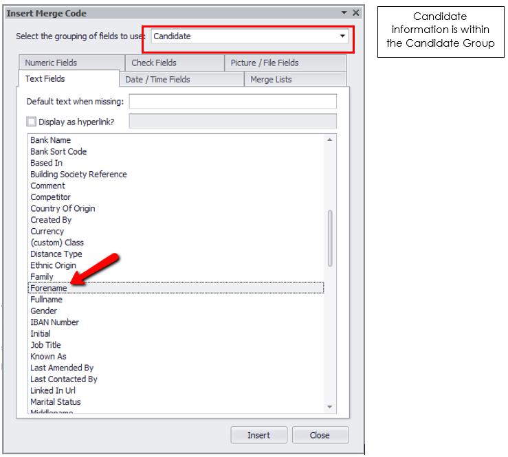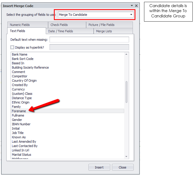 Merge codes can be inserted into templates (email, SMS, postal) and CV builders to pull through data directly from Infinity records, used correctly it can save huge amounts of time.