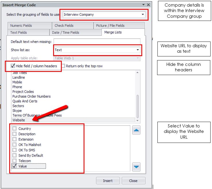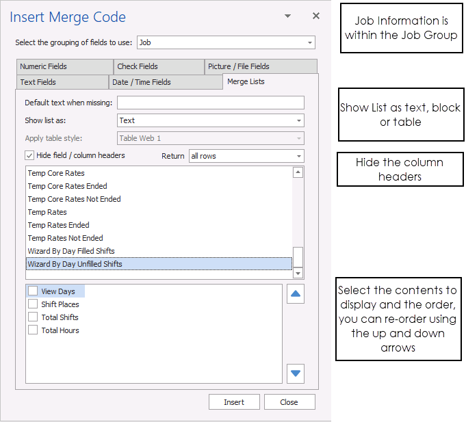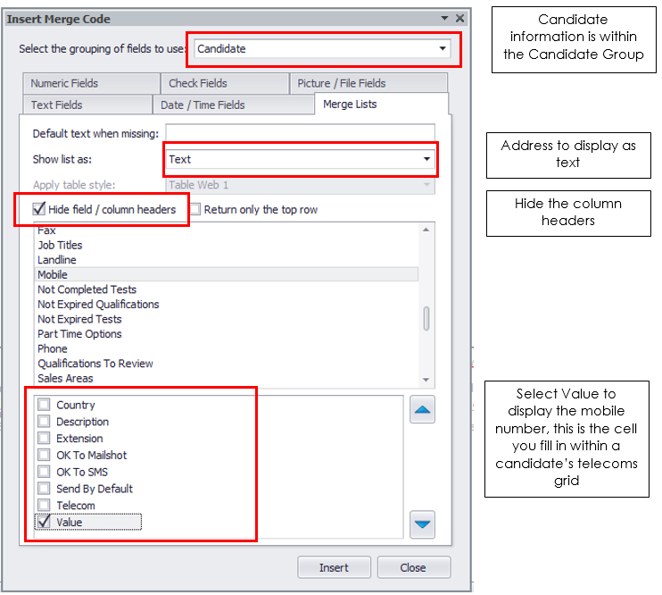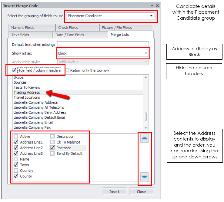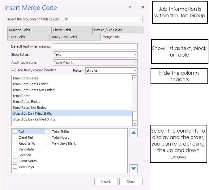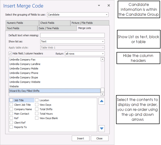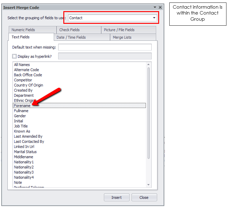 Merge codes can be inserted into templates (email, SMS, postal) and CV builders to pull through data directly from Infinity records, used correctly it can save huge amounts of time.