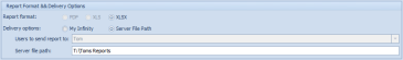 Delivery Options – My Infinity Users to send report to: |