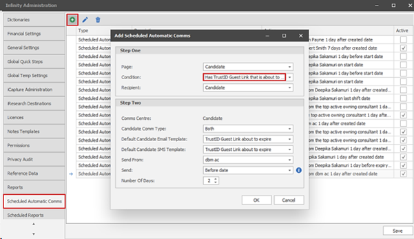 A Candidate Condition exists in Scheduled Automatic Comms called “Has TrustID Guest Link that is about to expire”