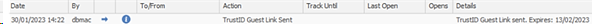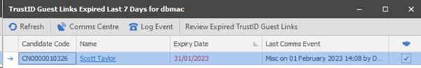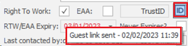 An ‘info’ event is logged on the candidate page for that user, with an event action of ‘TrustID Guest Link Sent’ and the expiry date (in 14 days’ time) is recorded in the event details field. This event cannot be deleted