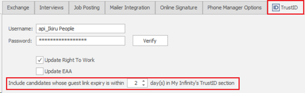 For further information and to set up a TrustID account for Infinity integration, please contact the Client Success department at Ikiru People - clientsuccess@ikirupeople.com