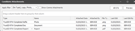 - Supporting information from TrustiD is downloaded and attached to the candidate record as per ‘Completed – Time Limited Status’