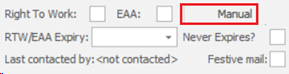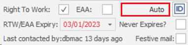 - • Auto (the tick boxes and fields are automatically populated using the candidate’s quals and certs as configured in Administration / General Settings / RTW/EAA tab)