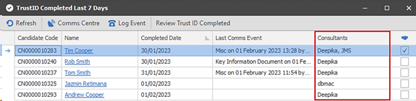 Hyperlinks are available that show the number of non-deleted, active candidates currently under TrustID RTW/EAA control that are owned by the consultant and that match the following status criteria: