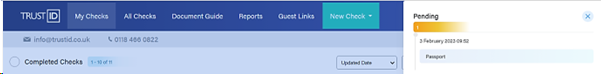 The information uploaded by the candidate is sent to TrustID and is used to perform the digital Right to Work checks. The details will appear in the ‘Pending’ area initially whilst waiting to be checked