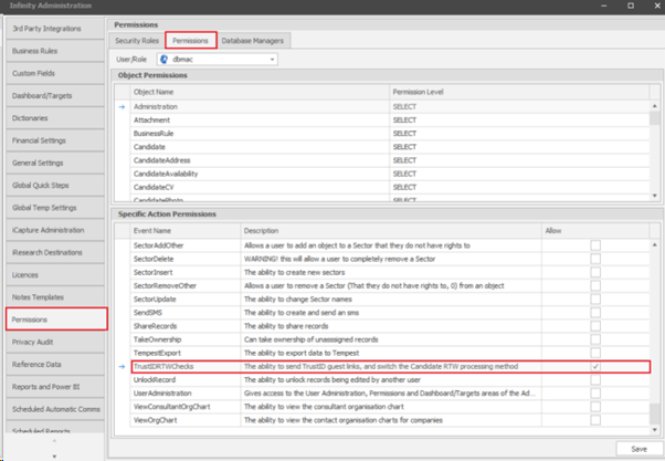 The ‘TrustIDRTWChecks’ user action permission allows a user to switch a candidate back to Infinity RTW / EAA control. This is done from the TrustID Status history screen