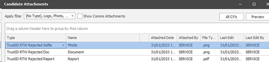 In Infinity the candidate TrustID RTW / EAA status is automatically updated by the service, along with any RTW/EAA fields and attachments if relevant