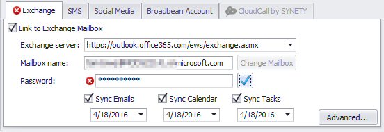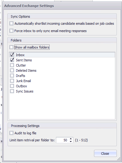 Tick Sync Emails (default) to ensure full synchronisation is setup, if you do not wish to fully synchronise emails use the Advanced Options