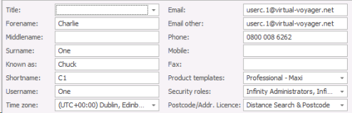 - Postcode / Addr. Licence level: This will be available if you have purchased Distance Search licences, you can assign the Distance Searching & Lookup function or Distance Searching only or None