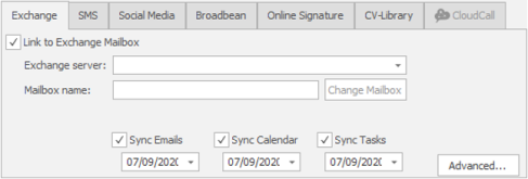 NB: - if you do NOT wish to have any synchronisation then un-tick the Link to Exchange Mailbox, you can tick this later if required