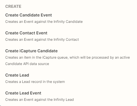 Alternatively, you can use our integration as an action that is triggered by a third party tool. For example, a candidate completes a form using a third party form builder and then you can set the action to send this data to iCapture.