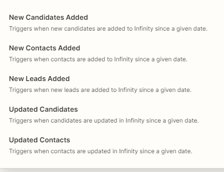 Zapier is an online automation tool that connects your apps and services. You can connect two or more apps to automate repetitive tasks without coding or relying on developers to build the integration. As Infinity is a secure partner with Zapier credentials are fully encrypted and can be removed at anytime.