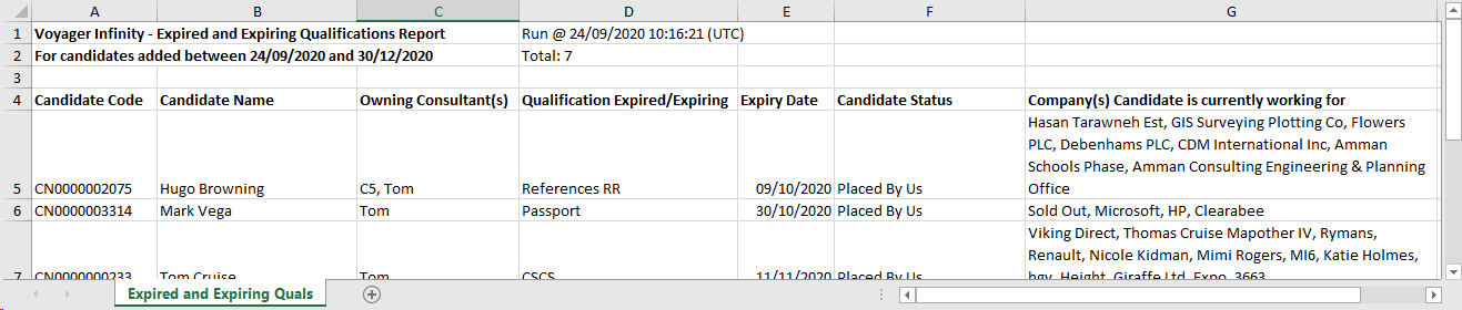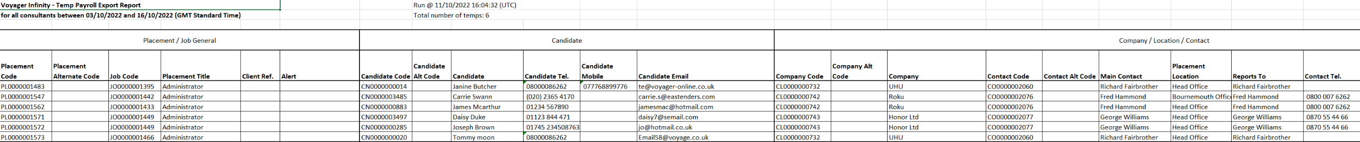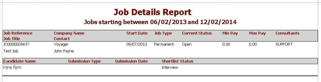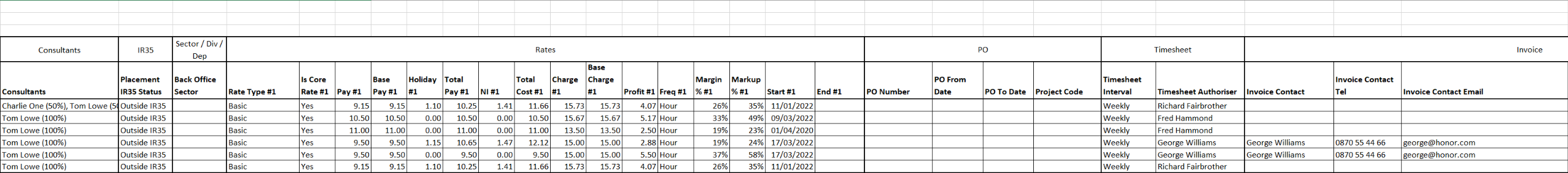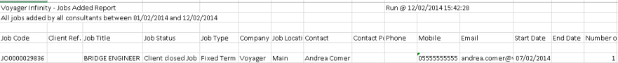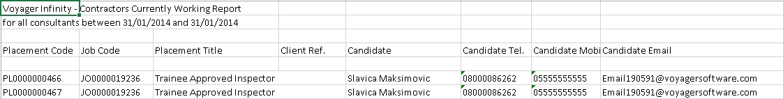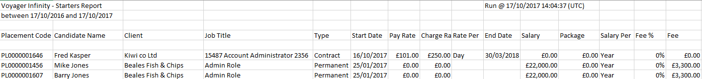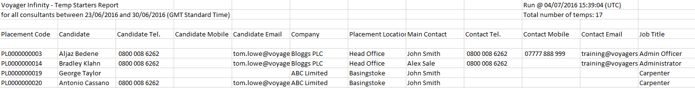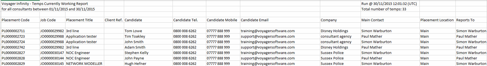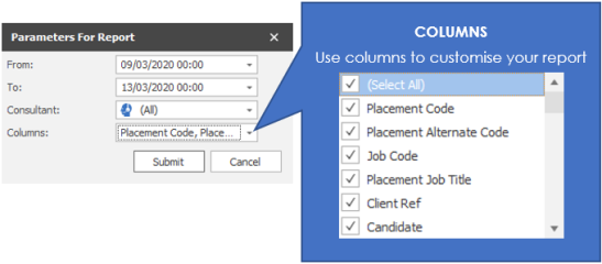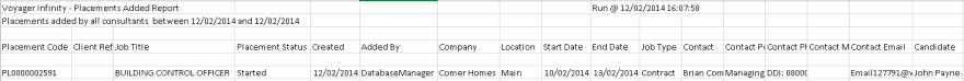 (includes Contract and FIxed Term placements) Parameters available – From and To dates, Exclude Perm tick box
