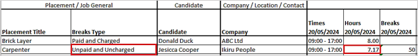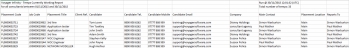 | Placement Job Title | Job Title displayed within placement record (sourced from job record) |