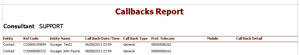 | Consultant Stats Landscape | 13 | Consultant Stats Portrait | 14 | Call Backs | 15 |