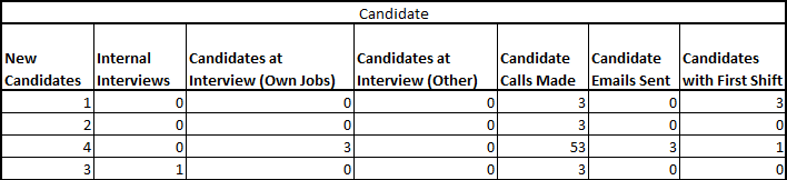| Candidate Custom Fields | Will include a column for each custom field within the record |