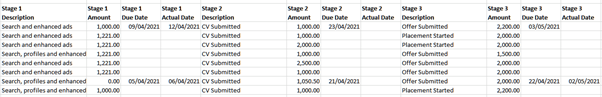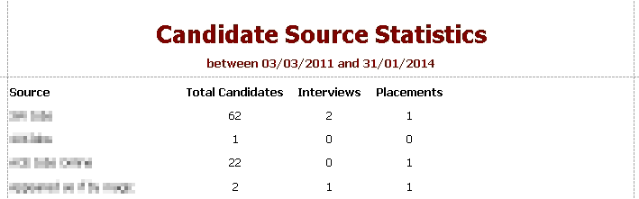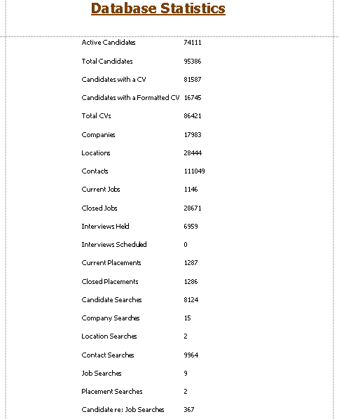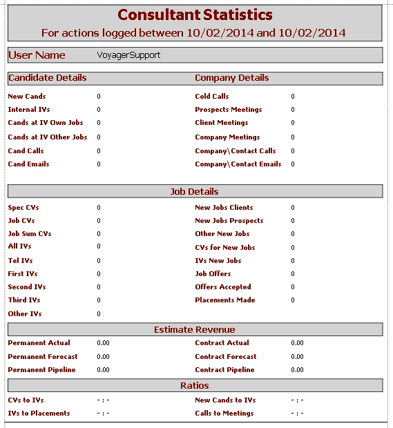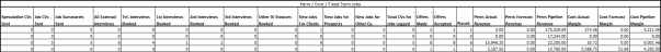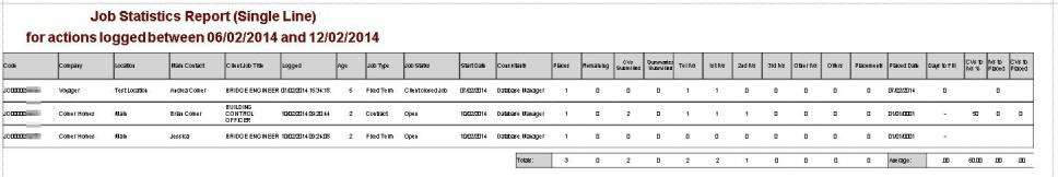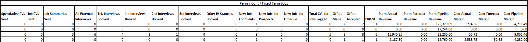 Allows you to review key statistics for each job, including CV’s sent, Interviews (by level) and placement(s). It also includes totals