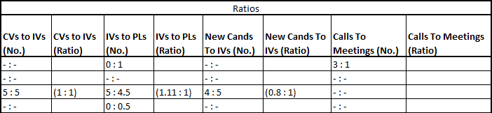 CVs to IVs % - Percentage of CV’s submitted to Interviews logged