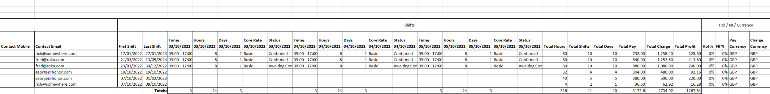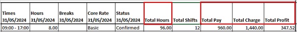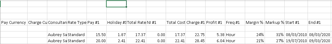 Contract Actual – An estimate of the total value of a started contractor (based on placement input i.e. pay & charge, hours and end date).