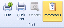 Quick Print – Will complete a printout using your default settings Parameters – Enables you to hide/unhide the Parameters panel |