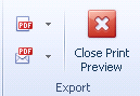 ExportThe top option allows you to export the report into different file types The bottom option allows you to email the report in different file types PDF, HTML, MHT, RTF, XLS, XLSX, CSV, TXT or as an image |
