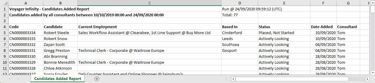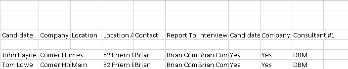 | Consultant | Will display the consultant (shortname)who added the candidate |