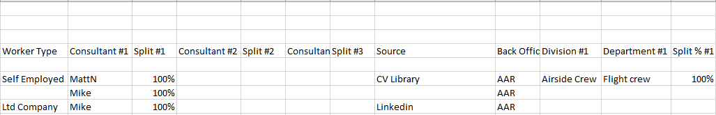 | Consultant | Will display the consultants included within the splits grid and include the split %, if more than 1 will display additional columns for additional consultant(s) |
