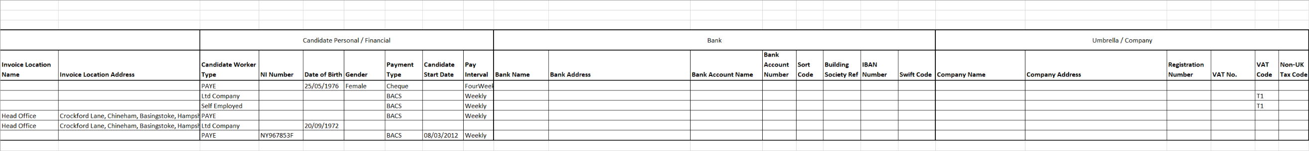 | Temp Starters | 31 | Cancelled, Removed Candidates & Late | 32 | Temp Payroll | 33 |