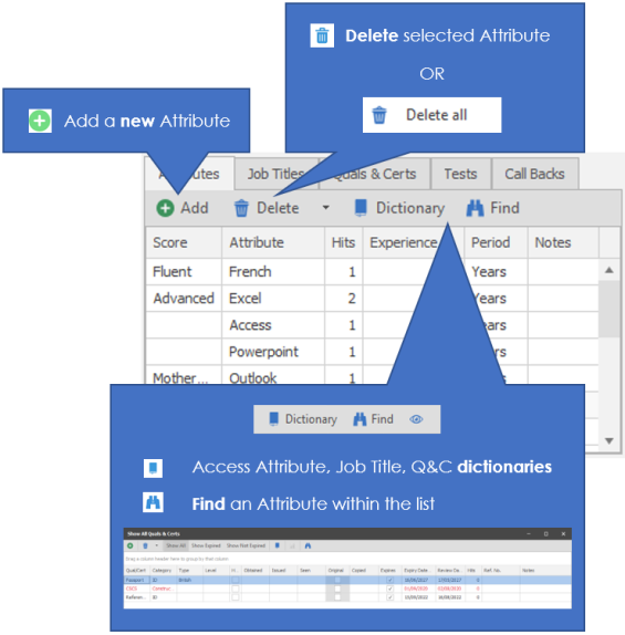 NOTE - Attributes are a list of ‘things’ that a candidate may have. These are NOT job titles or qualifications and certificates; these are dealt with in their own right. Attributes could be a skill, industry or any other label that you would need to add to a candidate.