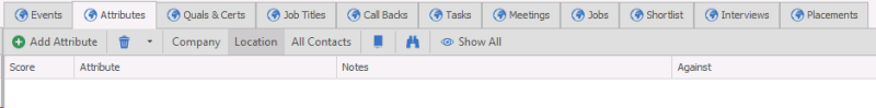 The contact, company or company location attributes are manually added but all using the same technique. . It is important that you assign Attributes s to the correct entity within a Company record so that these can be utilised when searching, see example below regarding inferred skills: