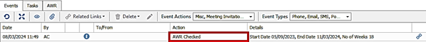 - Event action is ‘AWR Checked’ or ‘AWR Un-Checked’