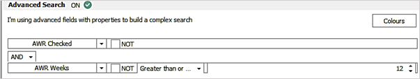 - When the ‘Not’ operand is used, search returns placements that are in at least one AWR clock that is not at the specified ‘No of Weeks’
