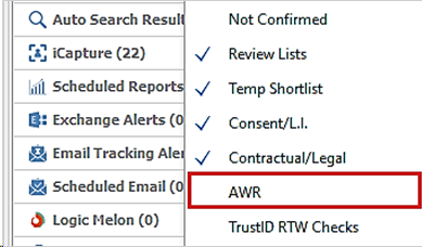 An AWR tab is on the placement page (contract and temp only) and candidate page, that shows all AWR clocks the placement/candidate is in, going back to Oct 2011. (Not just the ones shown in My Infinity / App menu notifications).