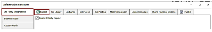 On all Infinity databases licensed for Copilot, there is a new tab in Administration / 3rd party Integrations called Copilot.