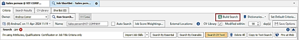 The Copilot ‘Build Search’ search button is on the main toolbar (at the top) of each Infinity search page and will create a boolean search string, that then gets applied to fields in the search screen.