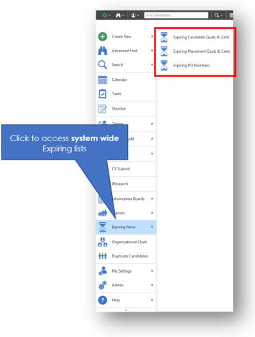 Access system-wide expiring driving licence checks. Please see the driving licence section for more details