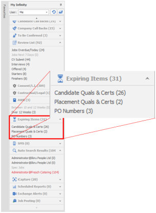 You can access the expiring items from your My Infinity panel to see just your expiring items or from the application menu to view all expiring items.