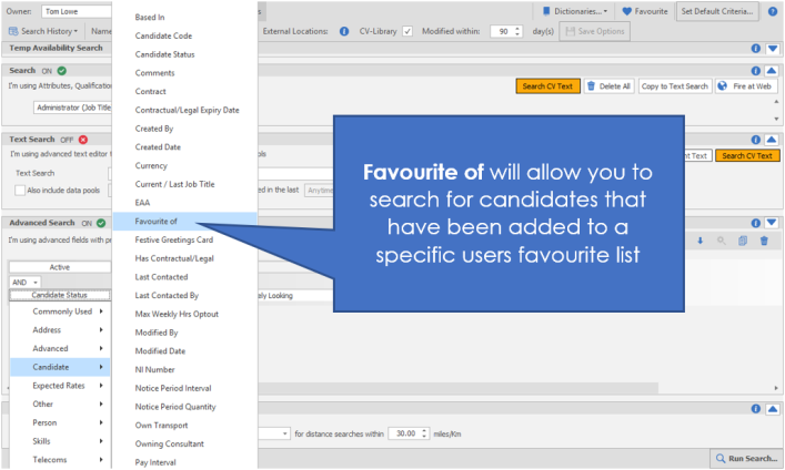 NB:- this is only currently available for candidate favourites and you cannot search based on folder structure within your favourites